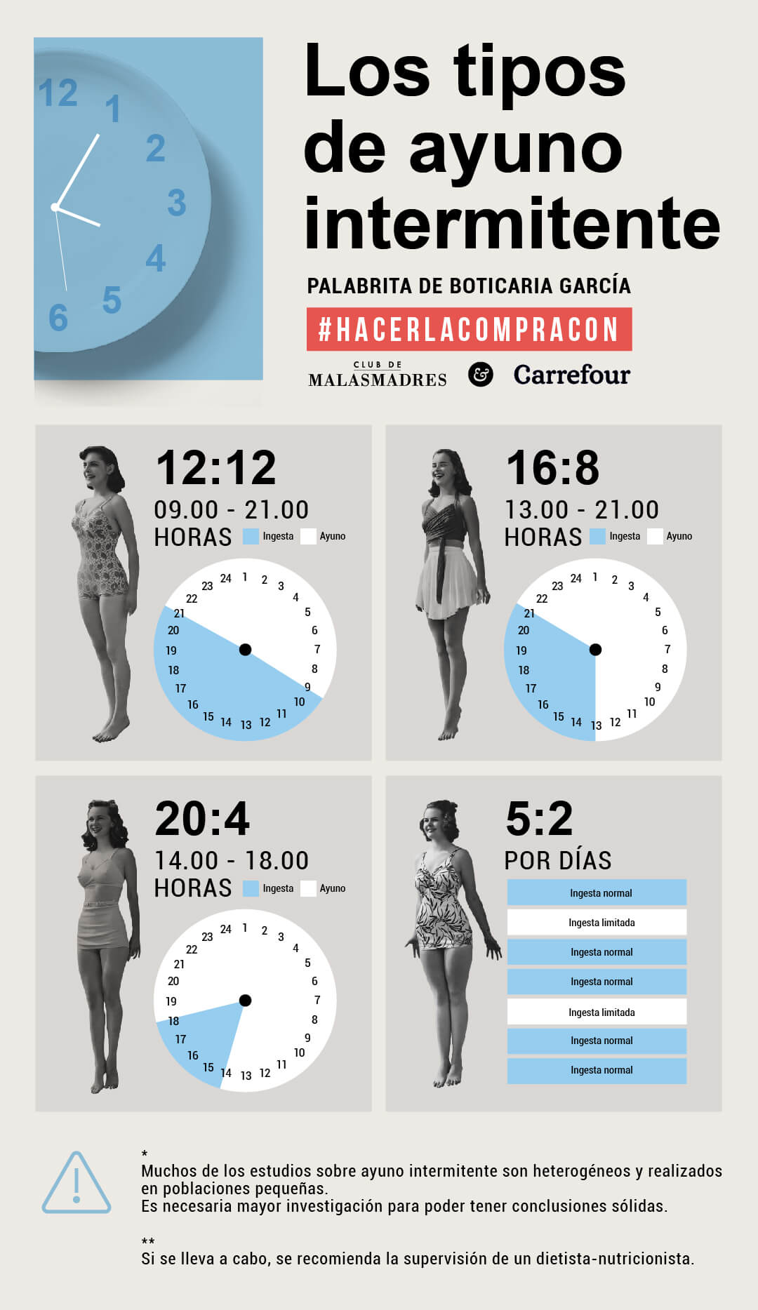 Más suave y perfecto para empezar.Ayunas 12 horas (incluyendo la noche) y comes en las otras 12. Es una forma natural de darle un descanso al cuerpo sin cambios bruscos.